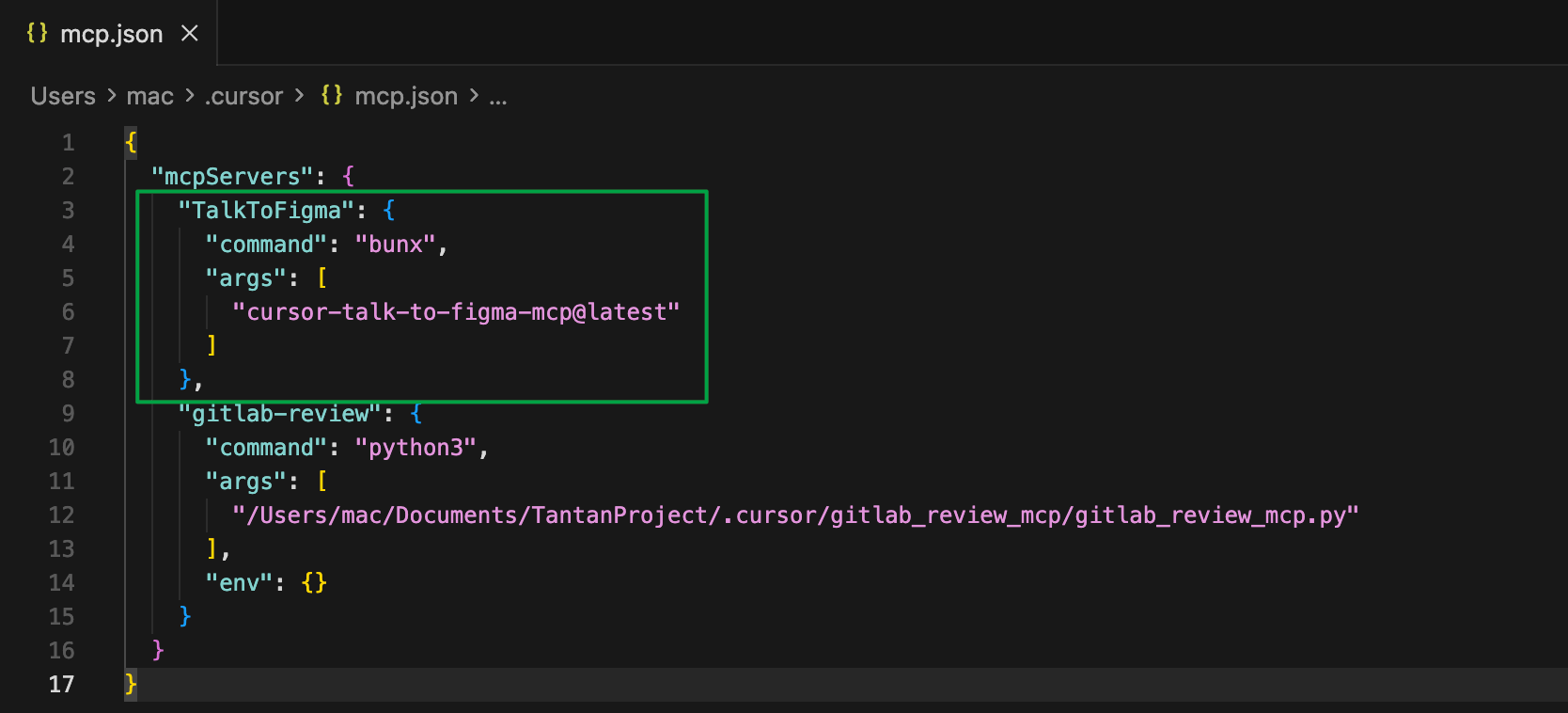 Step 4:把配置复制到 Cursor 的 mcp.json 文件中。